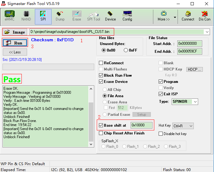 Step 6: 加载image“IPL_CUST.bin”, 设置“Base shift”at 0x200000。