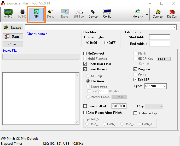SPItab,点击More并且选择类型为SPINOR;