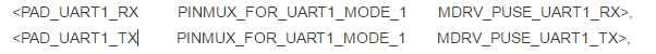 <PM_UART_RX PINMUX_FOR_UART0_MODE_1 MDRV_PUSE_UART0_RX >, <PM_UART_TX PINMUX_FOR_UART0_MODE_1 MDRV_PUSE_UART0_TX >,
