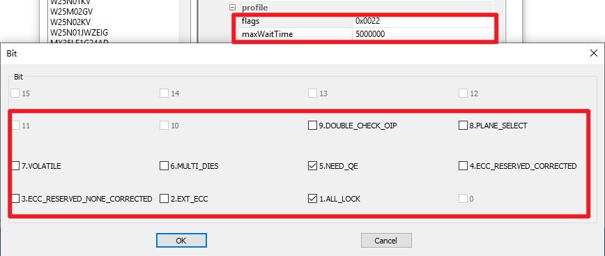 | BIT9 | 特殊的flash需要对OIP(寄存器buzy bit)进行两次判断,请与厂商确认勾选 |