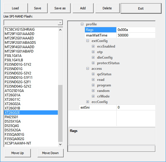 | DieConfig | Die Code,切换die,(多die结构的flash才需要填写) |