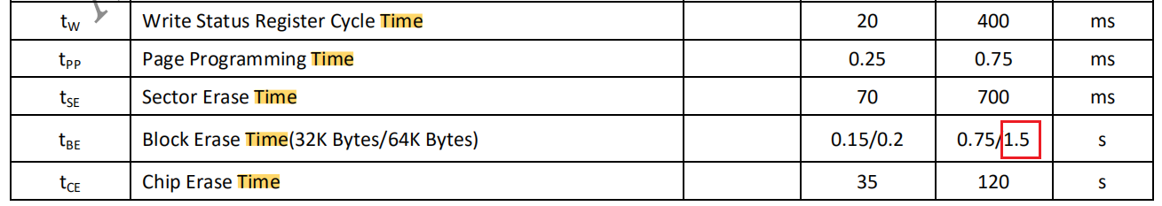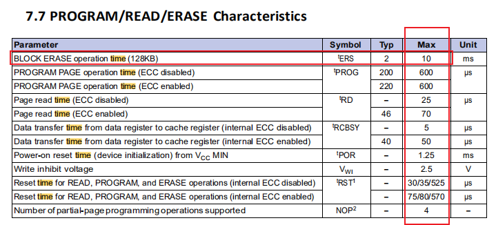 | Max Wait Time | flash完成某个动作的最大等待时长,单位us,建议10*(Block erase time) |