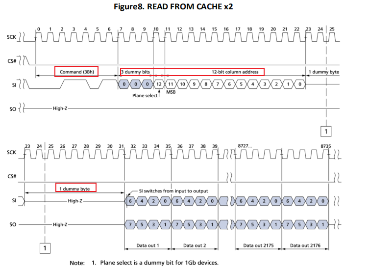 读时序为:0x3B + 3byte address + 8 Dummy Cycles + data