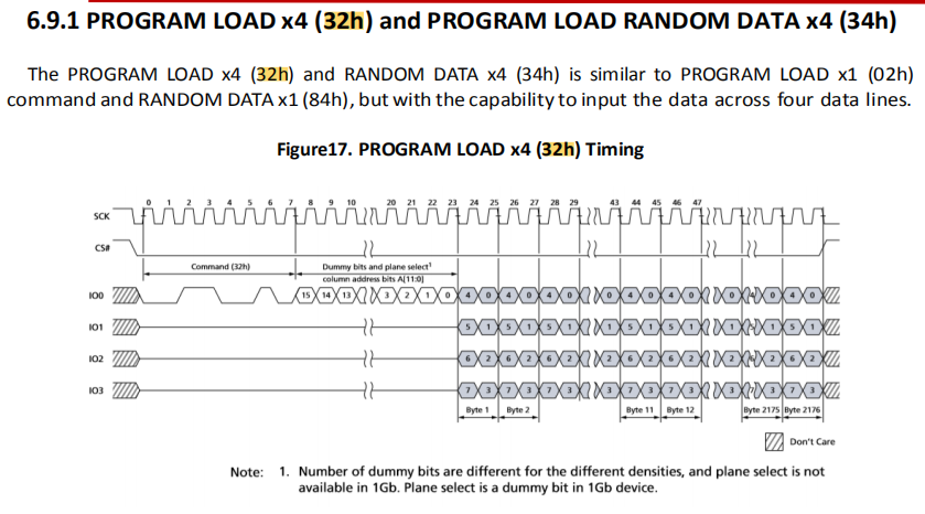 - PROGRAM写时序为:0x32 + 3byte address + data