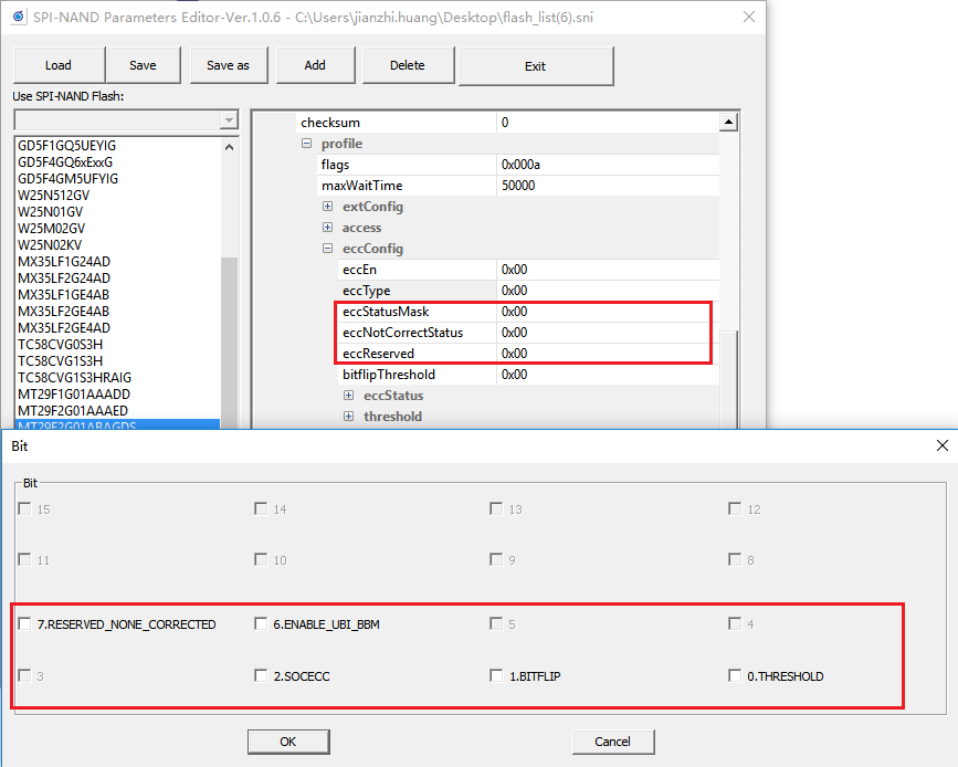 | BIT8 | 2 plane特殊flash勾选,请查询数据手册,或者直接与厂商确认 |