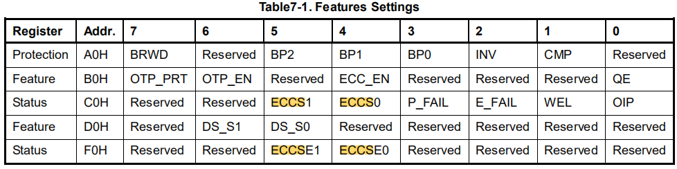 | BIT7 | 易失性寄存器,flash的寄存器值会因为reset cmd或者掉电复原时勾选 |