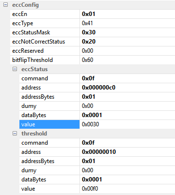 | EccEnabled | ECC enable,使能后ecc功能开启,用于数据校验及修复 |