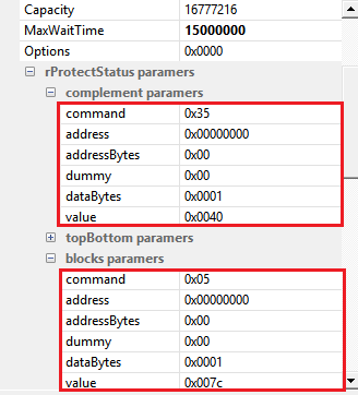 | Blocks paramers | 写保护的参数,具体参考数据手册写保护章节 |