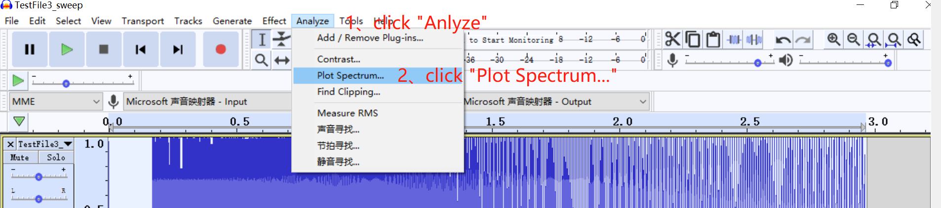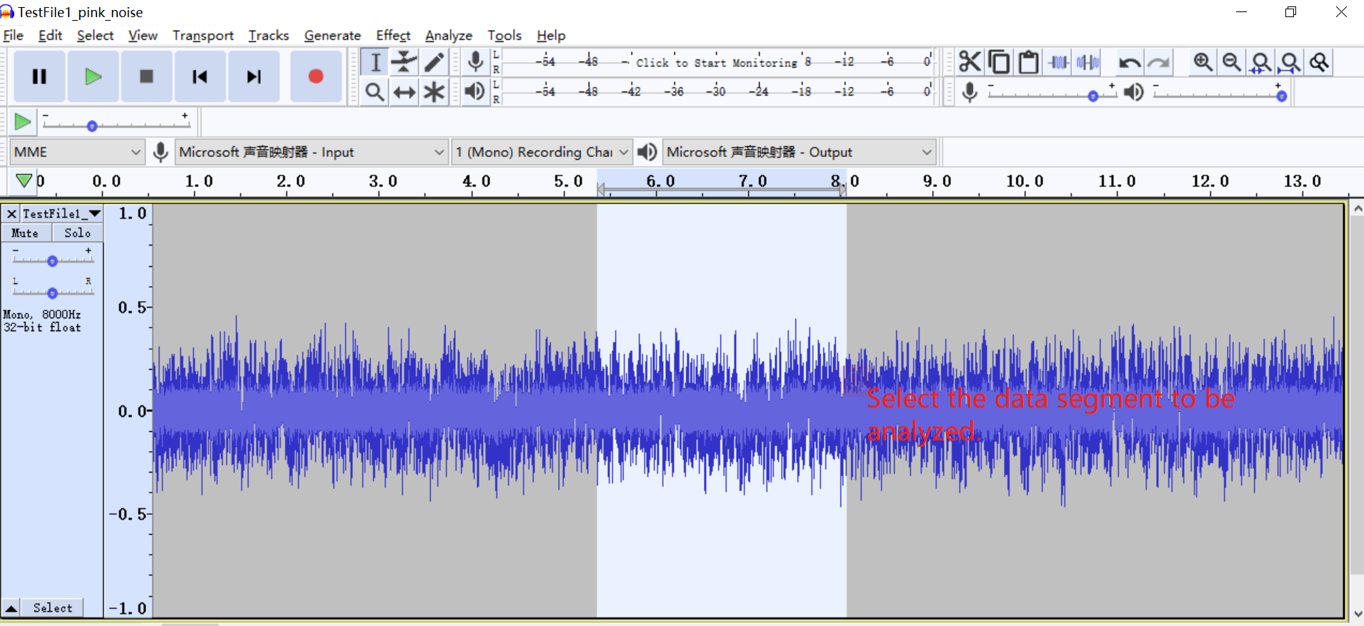 It`s often necessary to check the signal over a period time in the intercom debugging. The method to check the signal value through Audacity is as the figure shown below.