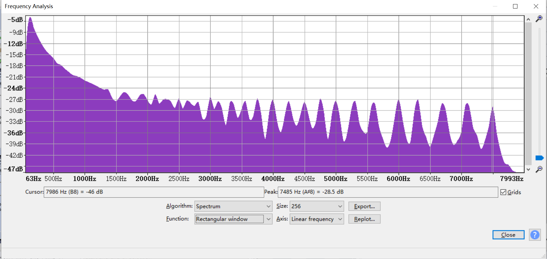 It`s often necessary to adjust the frequency response characteristic in the intercom debugging. The method to check the frequency response characteristics of audio files through Audacity is as the figure shown below. After getting the frequency response curve of the current device, you can adjust it through EQ.