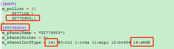 Add the section name of the new Panel parameter to the m_pnlList variable of the ROOT section (only one LCD section of different interfaces can exist, for example, there is already a TTL panel section name in m_pnlList, then if you want to add a new TTL, you can only delete the existing section);