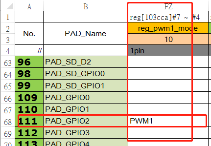 Check the Tmux page of SSD222X HW CheckList V03.xlsx to find the padmux corresponding to the pin, as follows: