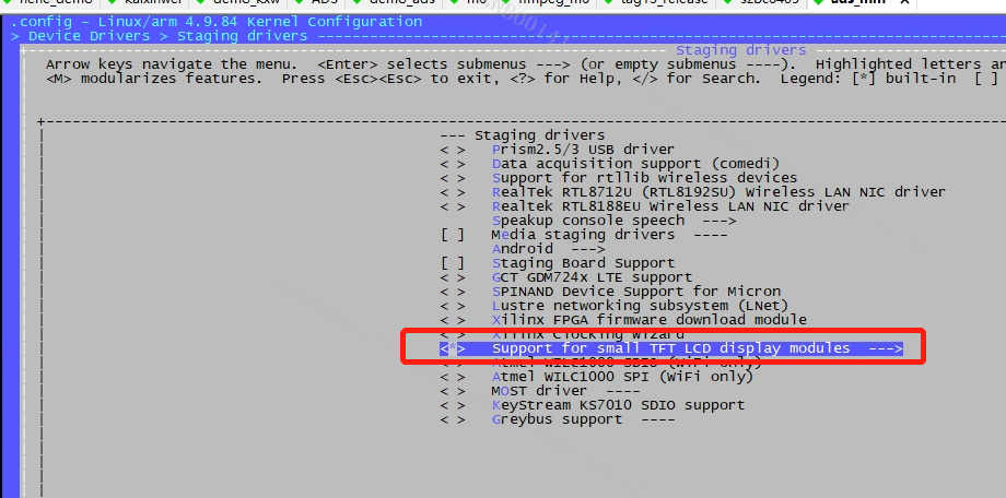 Open fbtft config in Kernel menuconfig and compile the red box into a module