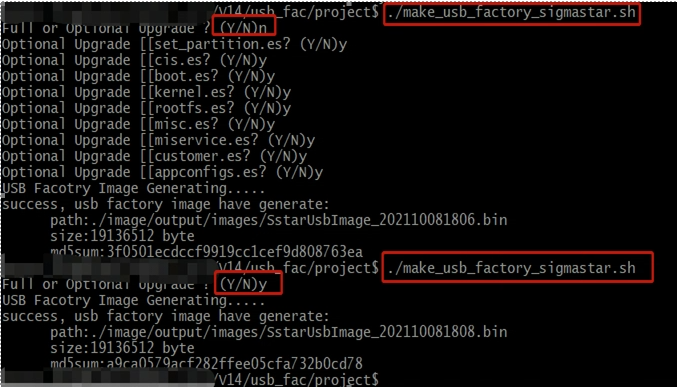 After the whole package of sdk is compiled successfully, execute the make_usb_factory_sigmastar.sh script, you can choose to upgrade all and some partitions: