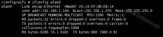 export LD_LIBRARY_PATH=$LD_LIBRARY_PATH:/usr/local/lib:/lib:/config/wifi mkdir -p /tmp/wifi/run chmod 777 /tmp/wifi/run ifconfig wlan0 up