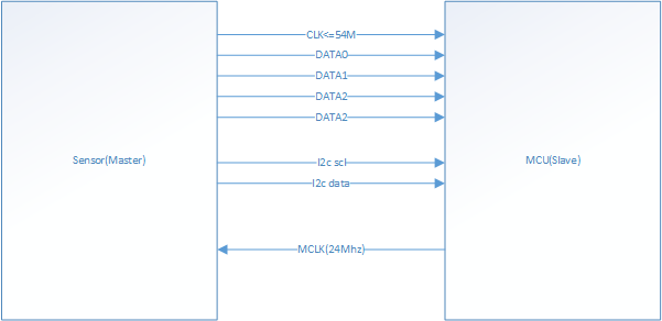 Note: CLK sent by sensor must be less than 54M, and MCLK sent to sensor must also be within the receiving range of sensor.
