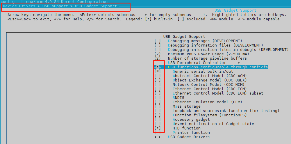 -> Device Drivers -> USB support -> Device Drivers -> USB support -> USB Gadget Support