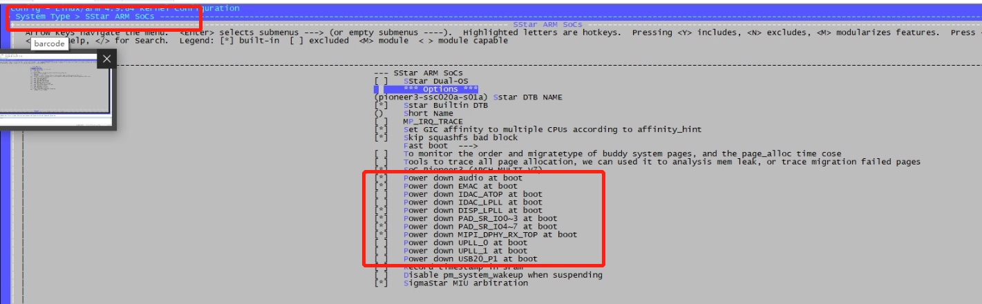 Adjustable items: Audio/EMAC/ MIPI DPHY TX TOP/ MIPI DPHY RX /USB20 P1 corresponded kernel config are as follows, please disable and set them to y.