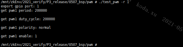 The address read in Kernel is 16bit, shift 0xca one bit to the right, and read the data at address 65. The data is 0xAAA0, which means that PWM0 is not set. PWM1, PWM2, and PWM3 are all set to mode10, which are consistent with the actual setting.