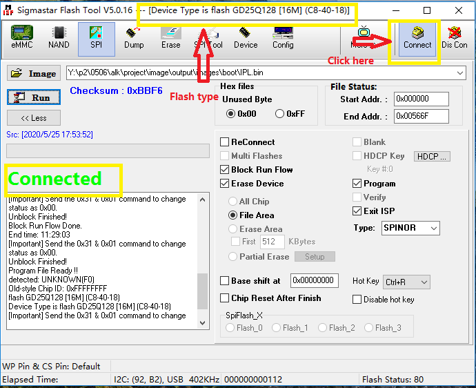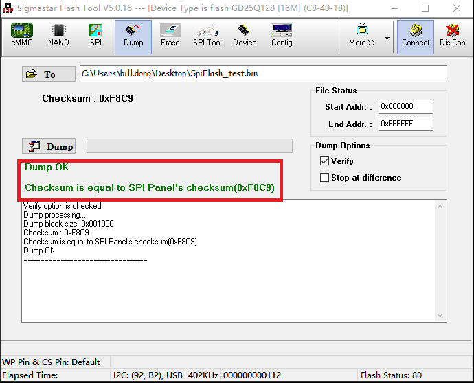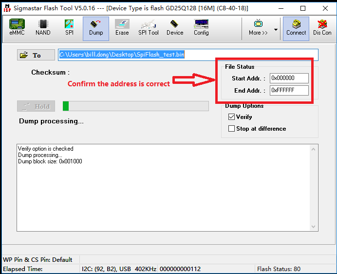 Click "Connect" of ISP TOOL to reconnect, and after identifying FLASH, start dump.