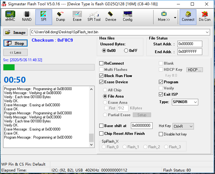 In addition to SPI NOR FLASh can be operated with a burner, Flash_Tool (ISP_Tool) also provides a simple dump function for making master slice.