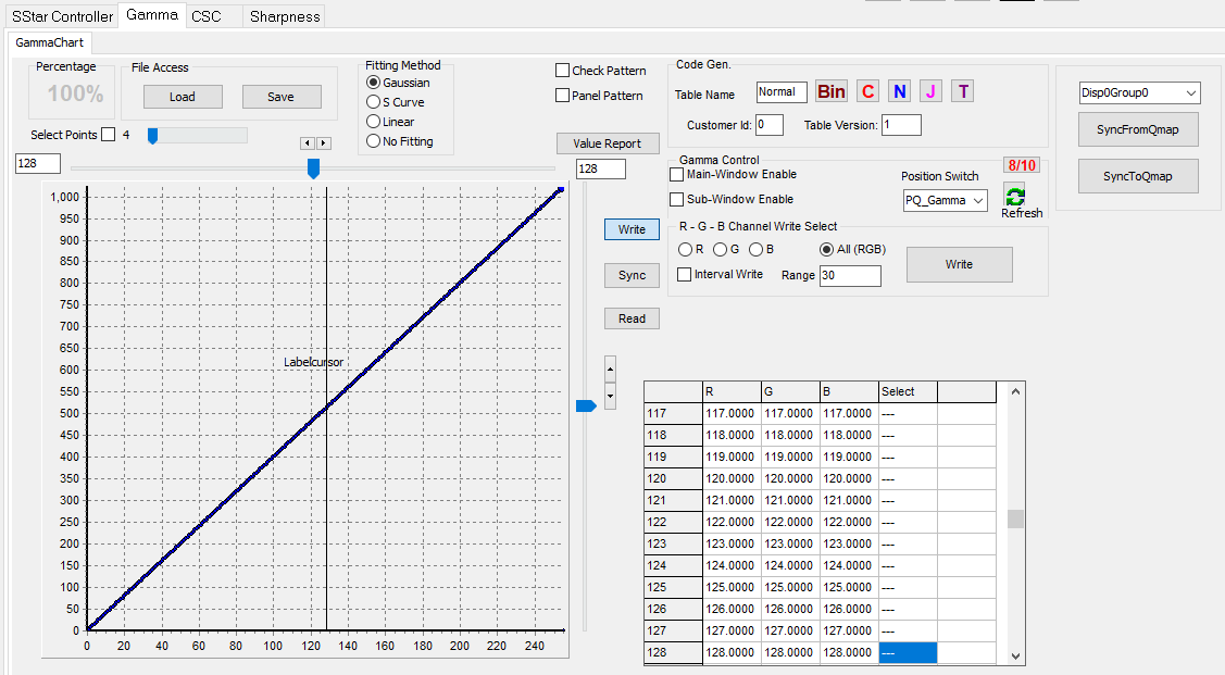 Switch to Write, click the Write button on the right to write the debugged gamma curve to the board, which can be seen directly on the screen.