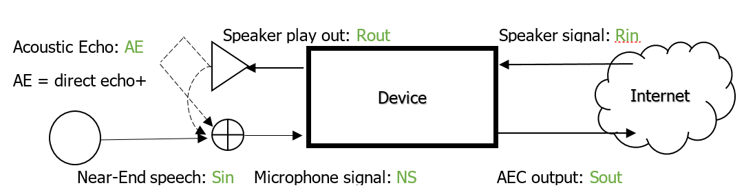 Only the speaker on the device side plays the far-end signal (Sin = AE + NS when NS =0)