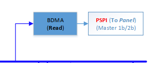 The chip sets PSPI1 as a host, and then sends the data to the panel through PSPI, with a BDMA inside to read the data in the memory.