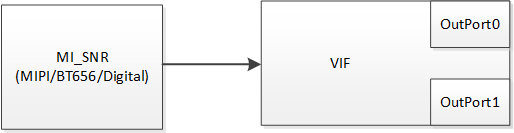 | VIF | Video Input interface | MIPI/BT656信号采集模块,VIF支持预缩放功能以在特定的场景下减少系统频宽占用,一路Sensor视频输入,VIF可以同时输出一路源尺寸和一路缩放尺寸(¼)到DRAM上 |