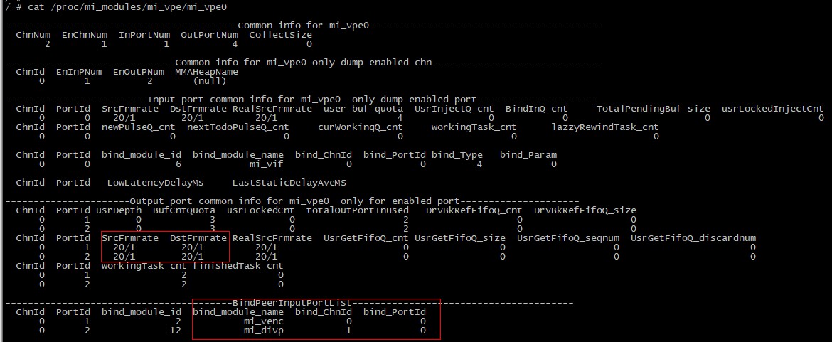 在/proc/mi_modules/目录各个模块的子文件夹下可以查看当前运行的debug信息,如: