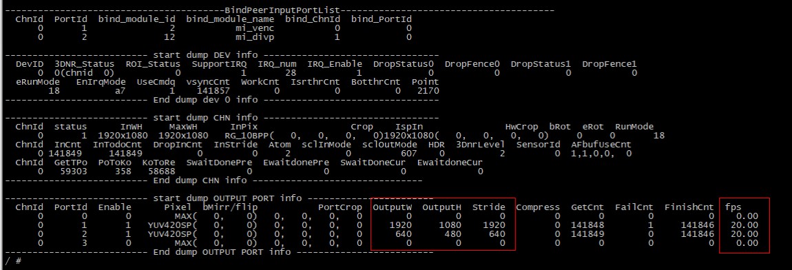 / vifDev = (s32vifDev == 2) ? 1 : s32vifDev; vifChn = vifDev * 4; // 设置vif device属性 MI_VIF_SetDevAttr(vifDev, &stDevAttr) // 使能vif device MI_VIF_EnableDev(vifDev) // 设置output port属性 MI_VIF_SetChnPortAttr(VifChn, VifPort, &stChnPortAttr) // 使能output port MI_VIF_EnableChnPort(VifChn, VifPort)