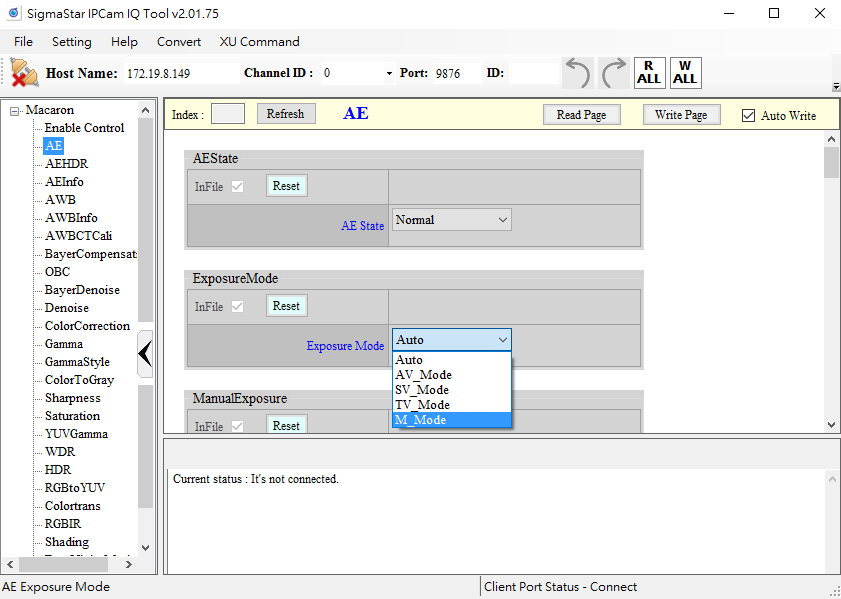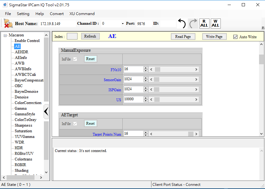 Step 6. Adjust AE sensor gain or shutter manually. At the same time, you can observe the AE message shown on the console.