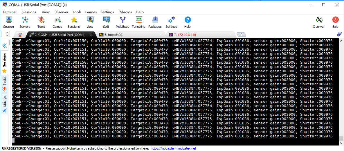 Step 5. Adjust AE sensor gain and shutter manually. At the same time, you can observe image changes through VLC or your debug message.