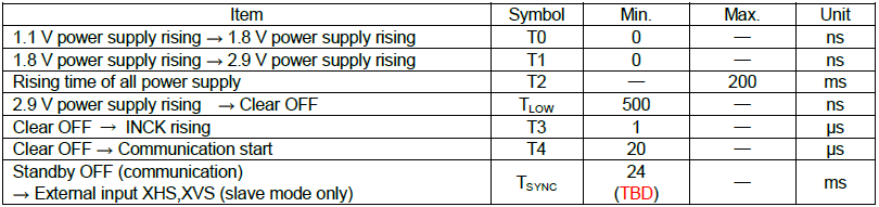 Table 1: the IMX415 sensor power sequence timing table
