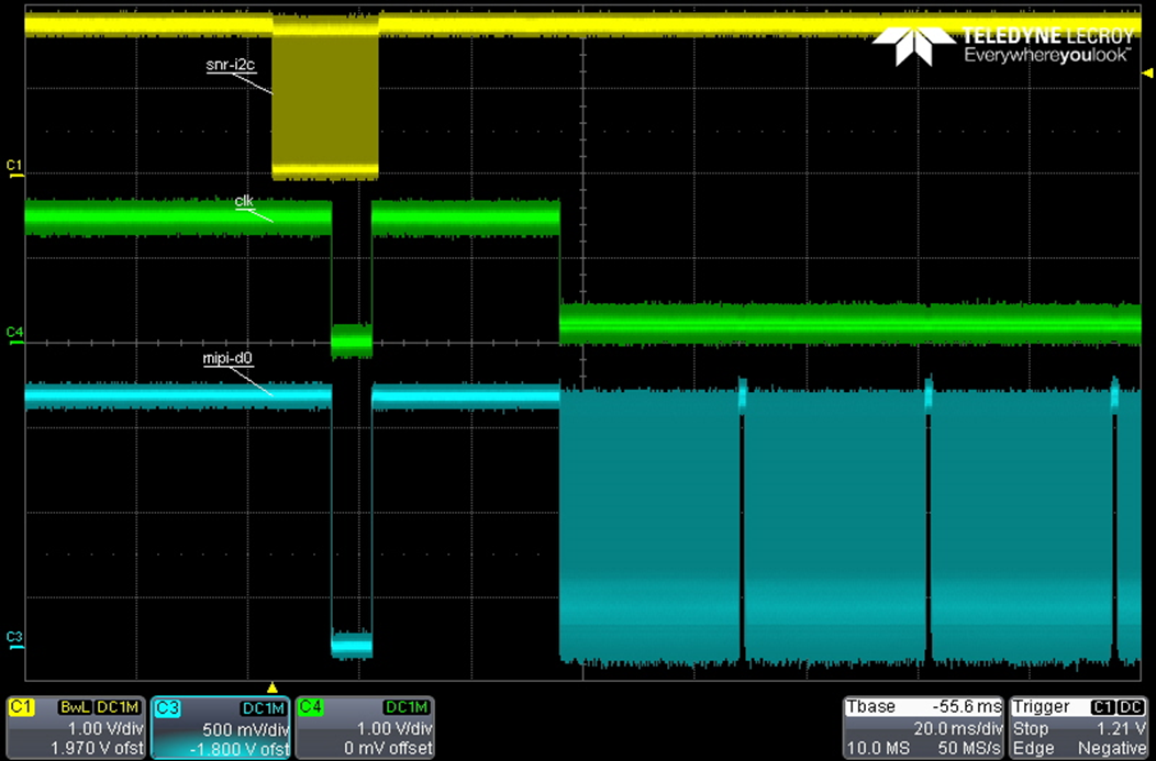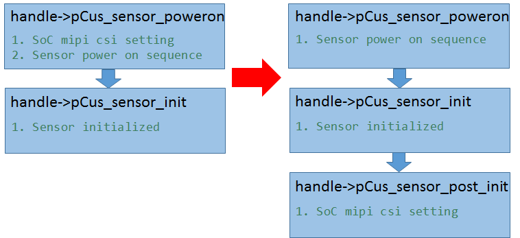 Currently, the solution is to change the sequence of the sensor power-on and the sensor initialization. After the sensor initialize completed, then enable SoC mipi csi to resolve this problem. Please refer to the following process: