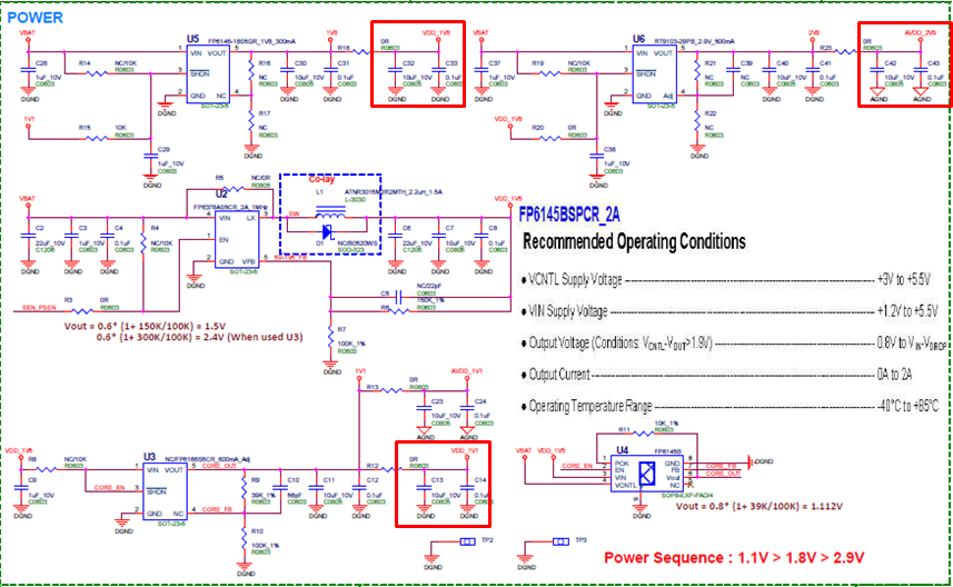 NOTE: Below is SigmaStar Sensor board schematic of power circuit. 1.1V, 1.8V, 2.9V power will pull high after power-on enable. First 1.1V, then 1.8V and 2.9V, you can use an oscilloscope to measure it on your sensor board.