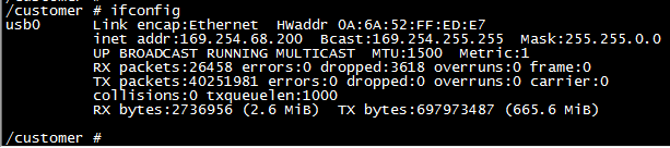 ifconfig usb0 169.254.68.200 netmask 255.255.0.0