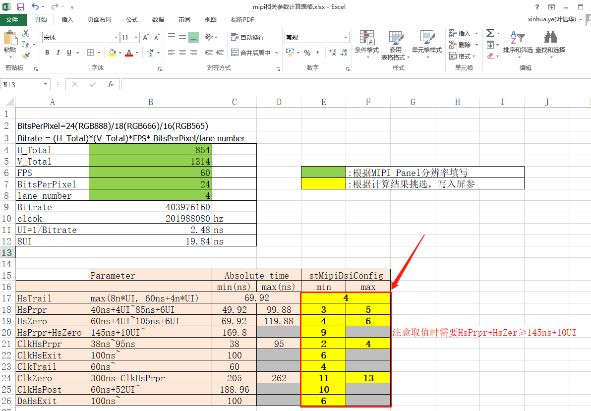 MIPI DSI参数说明: