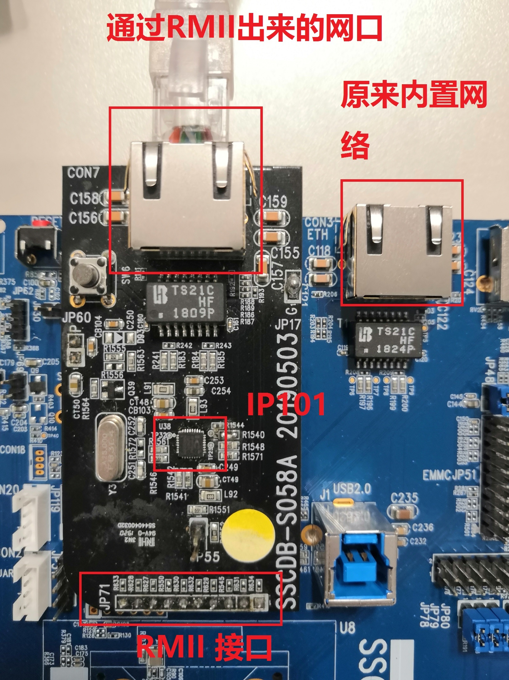 kernel下:配置相关ip,ping xxx.xxx.xxx.xxx查看是否ping通网络,若是,则RMII接口可用。