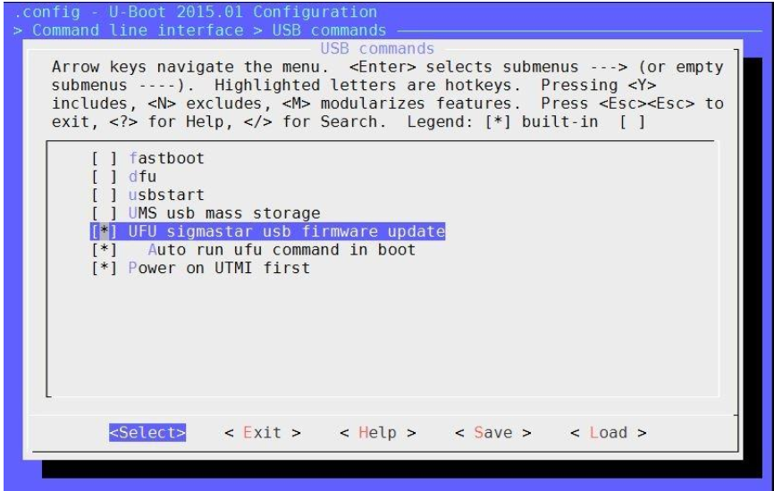 注意:如果选择 Auto run ufu command in boot,那么 u-boot 就会启动跑进 ufu 停住,等待升级。 此项用在空片升级才需要选,正常情况是不需要选上,否则会进不到 kernel。