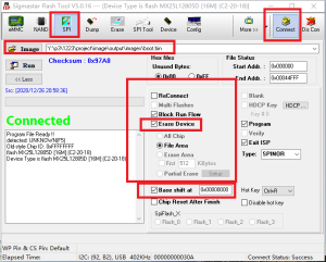 打开isptool,选择spinor,然后点击connect,工具显示connected表示已连接成功。