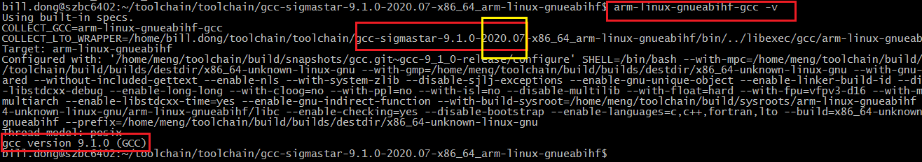 配置完成后,可以按照如下方式确认gcc版本是否已经切换到9.1.0版本。