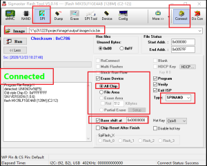 打开isptool,选择spinor,然后点击connect,工具显示connected表示已连接成功。