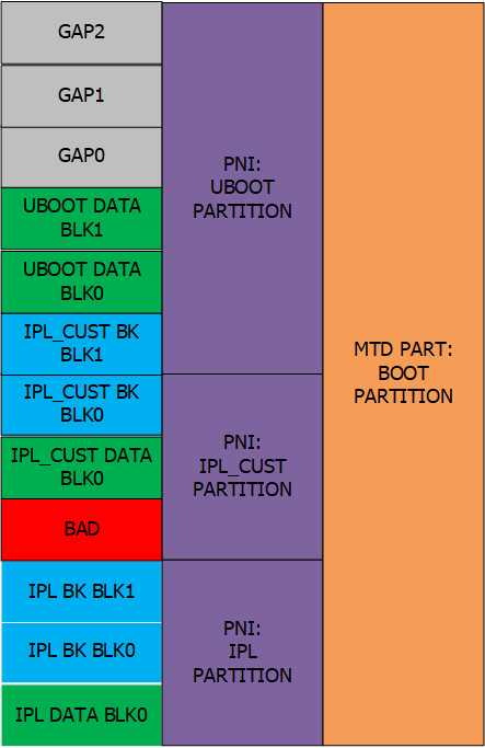 保存的分区信息,简称PNI,由于只有IPL/IPL_CUST/RTK才能看到PNI中的信息,而当linux系统起来后,分区信息就被替换成uboot的mtdparts,走linux原生的分区流程。
