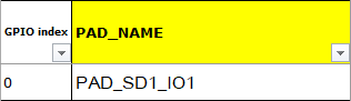 GPIO index and PAD_NAME are the most basic information about the pin, representing the GPIO index number and name, respectively.