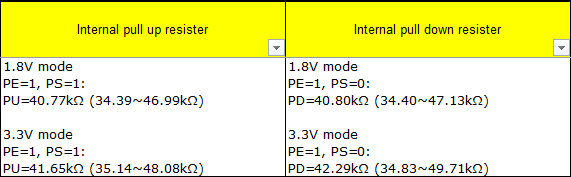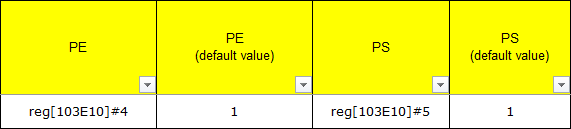 The specific values of PE and PS can be confirmed through the following two columns, where PE=1 and PS=1 indicates pull-up; PE=1 and PS=0 indicates pull-down.