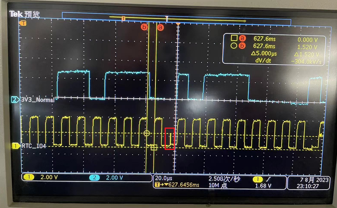 When the master receives the slave ACK signal and continues to output the next bit, the PAD needs to switch from input mode to output mode. During this period, the internal pull-up resistor of the PAD generates a short pulse, which normally does not affect communication.