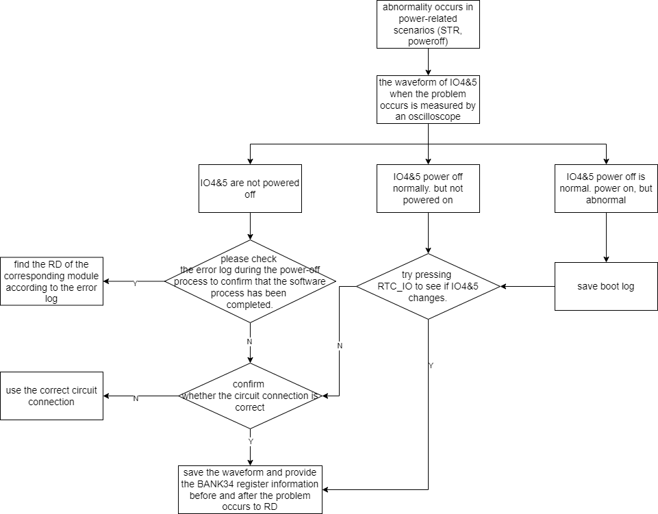 Refer to the debug flowchart for scenarios where io⅘ controls power.