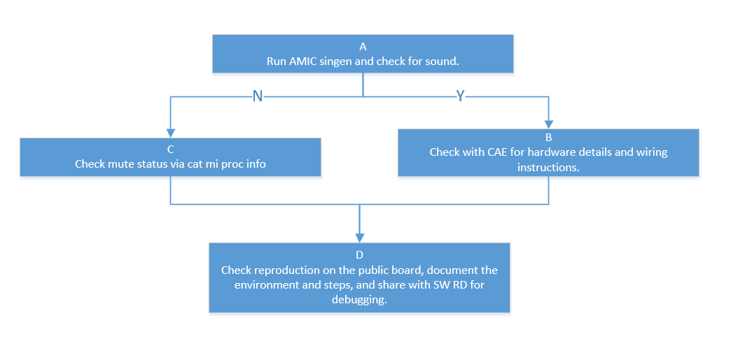 | B | Seek CAE to confirm hardware issues, including Audio 1.8V power supply, AMIC bias, and AMIC wiring location, and other hardware-related issues |