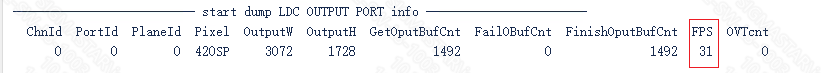 Execute cat /proc/mi_modules/mi_ldc/mi_ldc0 to check the overall frame rate of MI_LDC at this time, as shown below: